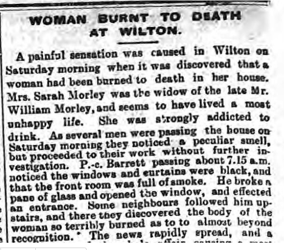 This Sarah Morley case was transformed into that of Euphemia Johnson (68) in London in 1922 who mysteriously burst into flames after taking a sip of afternoon tea. Strangely enough, not only nothing in the room had any fire damage, but even the clothes she had been wearing were intact. It is clear that this is pure fiction, and even where the sensationalist got the wrong date from, again, without bothering to go to the source.